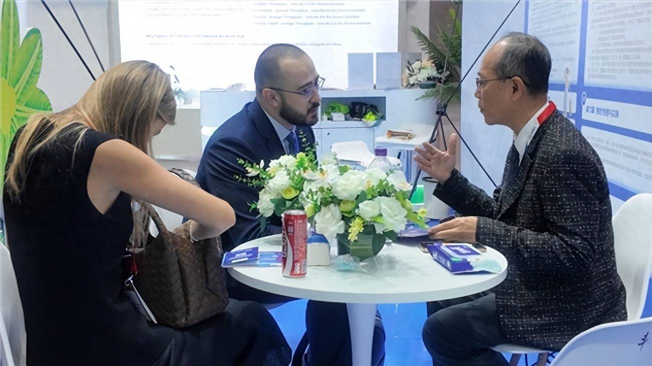 (工作人员与国外航司代表洽谈)