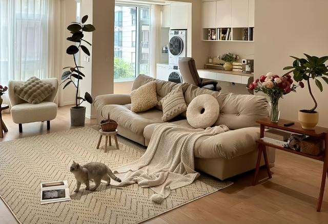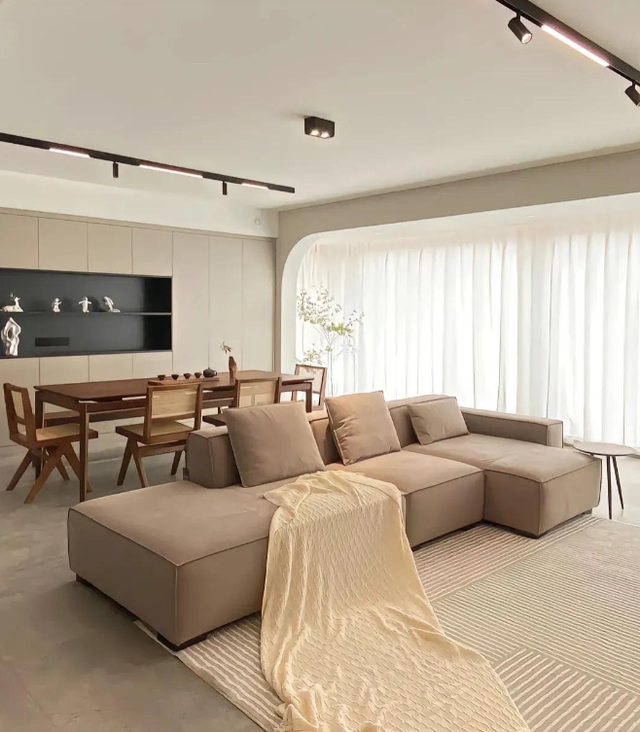 沙发、餐桌、储物柜的摆放像是在解一道难题,稍有不慎就会影响日常动线。